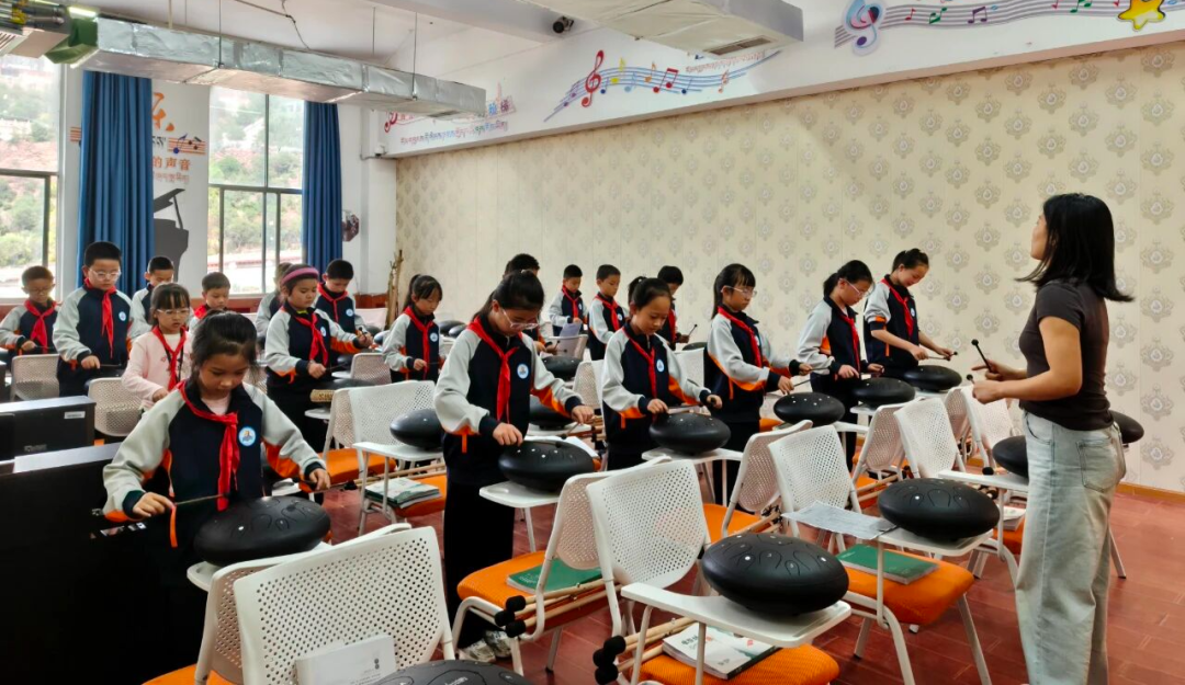 学生们学习空灵鼓