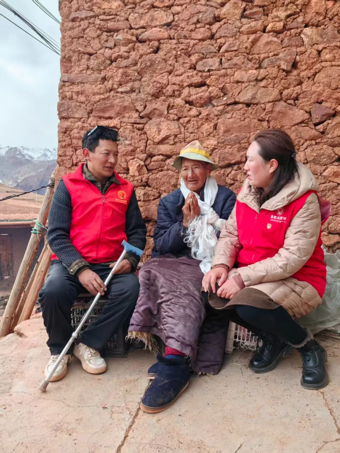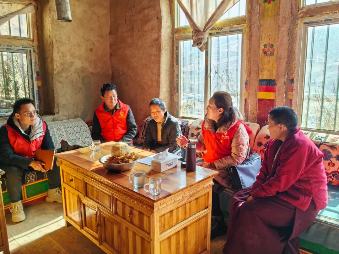 精准帮扶环节温情涌动。党员队伍每到一户均献上洁白哈达,与群众促膝长谈摸清民生底数与实际需求。在交流不便的村民家中,党员通过手势与眼神耐心询问照料情况,对方以真挚点头表达感激;面对行动不便的村民,大家细致了解康复进展并予以鼓励,简单的“感谢党”三字承载着深厚情感。走进百岁老人家中,党员关切询问饮食起居并叮嘱家属悉心照料,老人慈祥的笑容成为对党和政府信任的生动注脚。慰问中,糌粑、大茶、荞面挂面、食用油等生活物资陆续送到村民手中,推动“我为群众办实事”实践活动向纵深开展。